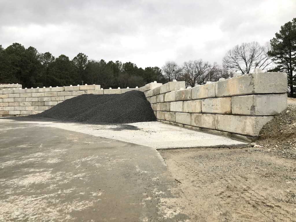 We provide bin blocks in Athens, GA, but what are these blocks exactly? We have two different types of blocks for you to choose from: a 6’ x 2’ x 2’ v-wedge block that weighs 3,600lbs and a 6’L x 3’W x 1.5’H lego block that weighs 4,050 lbs. The v-wedge blocks each have four v-wedges (a protruding wedge on the top and side and an inverted wedge on the bottom and opposite side), that enable them to be slid together and interlocked. The lego blocks, on the other hand, have two cones protruding shapes on their top and two indents of the same shape on the bottom that enables them to interlock. Both the v-wedge and the lego blocks have a rebar handle loop on each of their tops. This loop enables you to move the blocks around without the use of complicated rigging equipment. Now, when it comes to transporting these blocks, each trailer can carry either thirteen of the v-wedge blocks or eight of the lego blocks. If you have any questions or would like further information about these blocks, please do not hesitate to give us a call and we’d love to chat with you! 762-994-5615