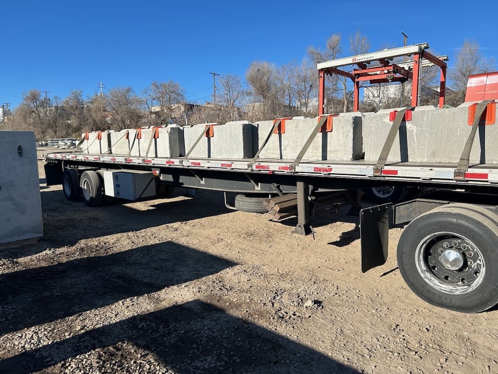 Lastly, we will discuss how you can receive your blocks after purchasing them! We offer either delivery or pick up of your blocks, which we will both discuss down below, starting with delivery. First off, in order to select delivery, you must have an open space of 47’-53’ available so that the delivery semi can safely enter and exit the drop off area. If you do not have this much space available though, we can discuss dropping the blocks off at another, nearby location and then proceed to relocate the blocks to the actual site by using smaller equipment. Next, you must have the proper equipment that is capable of offloading the blocks. In order to do this, it must 1) withstand the weight of your blocks (1,800-3,600lbs) and 2) reach a height of 7 ‘+ (this is because, in height, the trailer is 5’ and the blocks are 2’). Next we will go over the pick up process. First you must give us a call in order to set up a date and time to come to our facility and pick up your blocks. When you come to pick them up, we will load the blocks onto the trailer for you, but we ask that in order to secure them down, you bring along a set of chains and/or straps that are able to do so. Thank you. We appreciate your understanding and cooperation. If you have any concerns or questions about either of these processes, please give us a call and we’d love to chat.